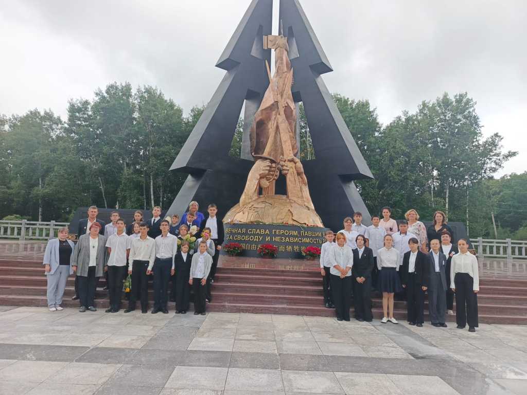 Школьники возложили цветы и почтили память воинов, отдавших свои жизни, защитив Родину во время Второй Мировой войны.